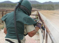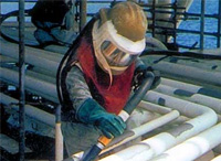 Abrasive Blasting is used to clean surfaces such as steel, brick, cement and concrete. A stream of abrasive material is propelled at high speed at a surface using air pressure, water pressure, or centrifugal force. The purpose of the blasting is to remove substances such as rust, scale, paint and graffiti from a surface. Abrasive Blasting equipment involves the use of a blasting pot containing the abrasive material, and a blasting hose with a nozzle attached which is manually controlled by the operator.